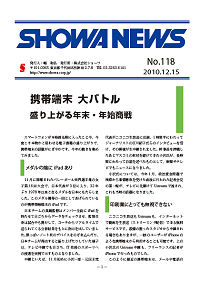 弊社 PR 誌『SHOWA NEWS』No.118 を発行しました。今年2010年は早くから電子書籍元年と言われてきましたが、予想以上の大きな動きとなって年を越すこととなりました。今号ではこの電子書籍と携帯端末を取り上げました。なお、ユーザー会 SHOWA 会の発行する『SHOWA 会通信』最新号でも電子書籍を取り上げています。ユーザー会の皆様には、あわせてご覧いただけるとさいわいです。 [10-12-16]