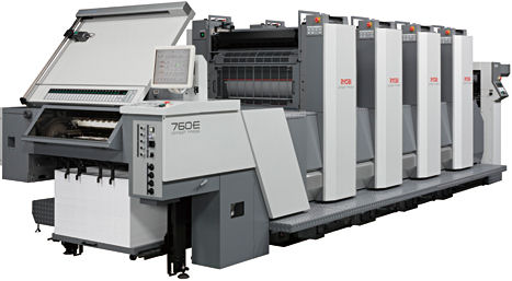今回公開される B2 オフセット印刷機 RYOBI 760E シリーズは、上位機種 RYOBI 750G シリーズの機能を厳選したコストパフォーマンスモデルで、2色機から6色機までの片面印刷機 RYOBI762E/764E/765E/766E と片面・両面兼用印刷機 RYOBI762EP/764EP/765EP/766EP のモデルバリエーションがあり、最高印刷速度は1万3,000枚/時となっています。このうち今回のショーでは、片面4色印刷機 RYOBI 764E が展示される予定です。