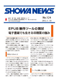 弊社 PR 誌『SHOWA NEWS』No.124 を発行しました。 メイン記事の「EPUB 制作ツールの現状」で、EPUB 形式の電子書籍に関する課題や印刷組版との関連をまとめてみました。そのほか、業界動向やユーザー会「SHOWA 会」の活動などを紹介しています。