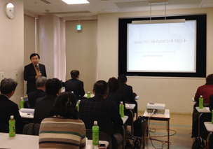 弊社ユーザー会「SHOWA 会」は5月24日、セミナーを開催しました。講師として富士フイルム産業機材部ネット応用ビジネスグループの山崎晋氏を迎え、電子書籍をめぐるフォーマットや読書端末の一般状況から、富士フイルム製のオーサリングソフトGT-EpubAuthorやクラウドサービスを利用したDTP業務などの実際まで、幅広い話をうかがいました。今回も定員を大きく上回る聴講希望をいただき盛況でした。 また同日開催したミニ展ではGT-EpubAuthor の期間限定貸し出しなどもあり、多数のご来場者で賑わいました。 [13-05-27]