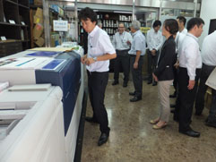 弊社ユーザー会 SHOWA 会は、9月12日、55名様の参加を得て工場見学会を実施しました。今回の見学会では、平成25年度印刷産業環境優良工場表彰「経済産業大臣賞」に輝いた(株)ウエマツ様のご好意により戸田工場を訪問し、環境活動と水なし印刷による生産・品質管理の活動と実践を見学し、印刷業の可能性を勉強いたしました。 ご多用中に多人数の訪問を受け入れていただいた㈱ウエマツ様に厚くお礼申し上げます。 ![]()